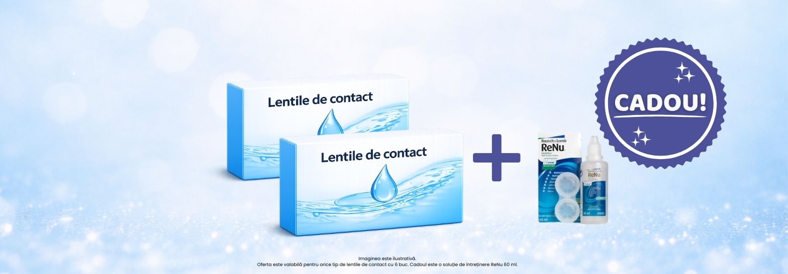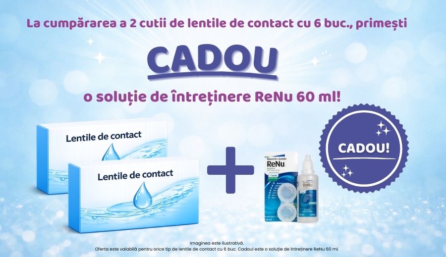 Oferta este valabilă pentru orice tip de lentile de contact cu 6 buc, în limita stocului disponibil.
